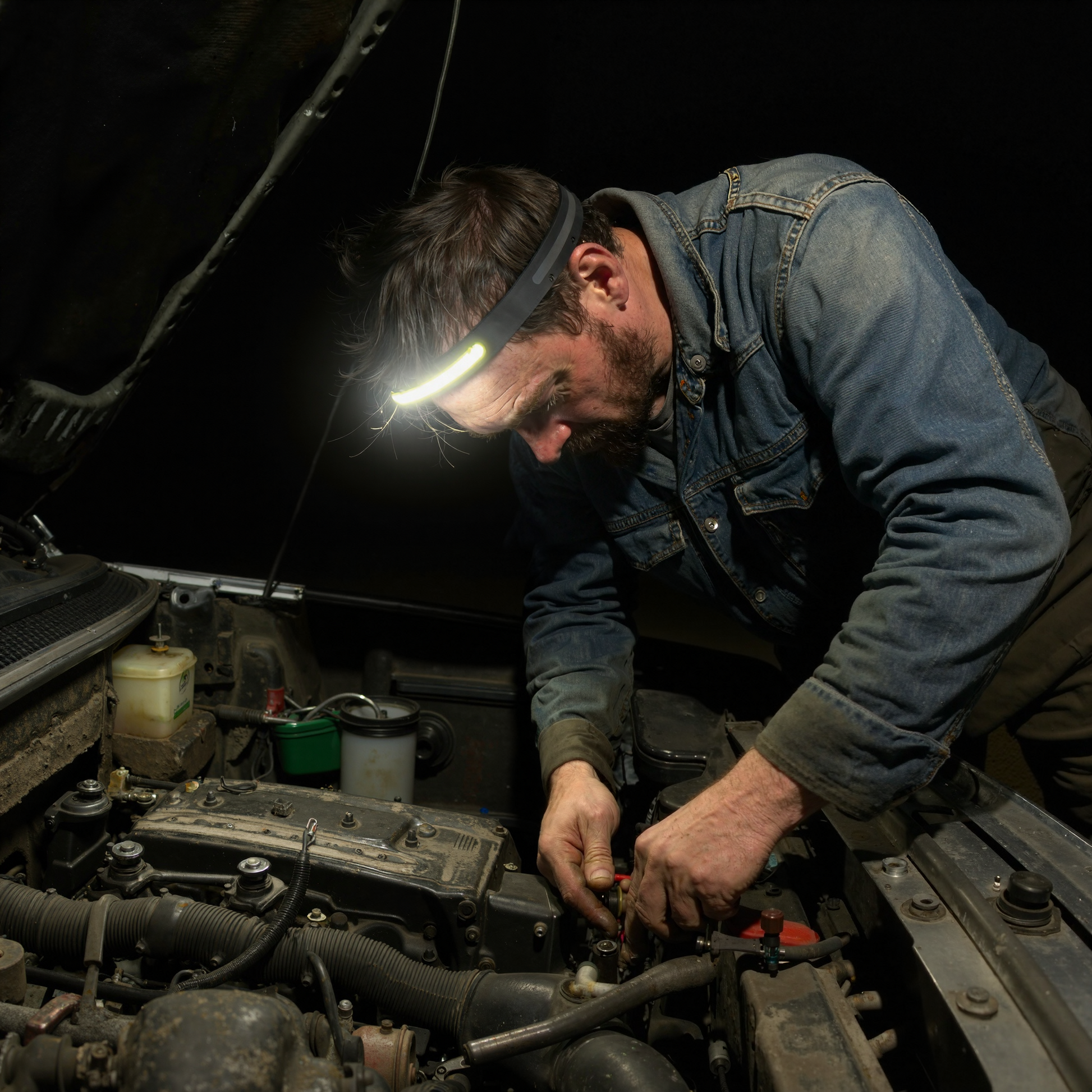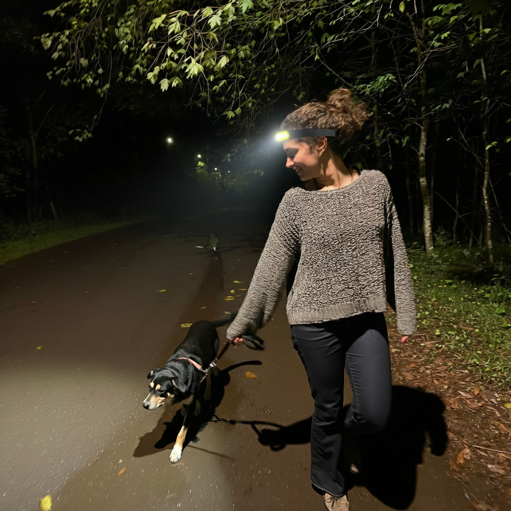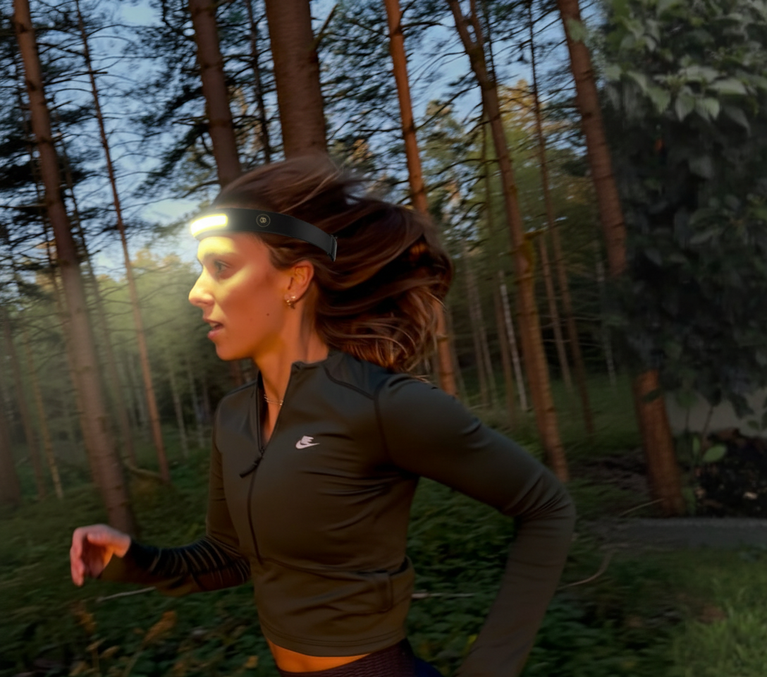 Observez comment le Halo230 éclaire tout le diamètre autour de vous comparé à une lampe frontale classique. (Faites glisser la barre orange pour voir la différence)